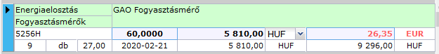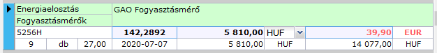 Egy sorban ugyanazok az adatok megjelennek, mint a jobb oldali panelen is (lásd előző alfejezetben!), kiegészítve az árazáshoz szükséges mezőkkel. A csillaggal jelölt mezők írhatók: