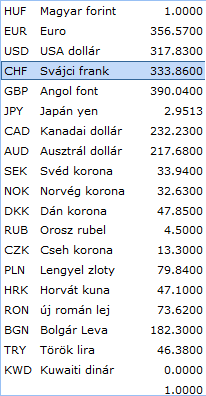 A legördülő listában a deviza kiválasztása után a rendszer az aktuális dátumot beírja a dátum mezőbe és  az MNB középárfolyamot az erre szolgáló rubrikába.