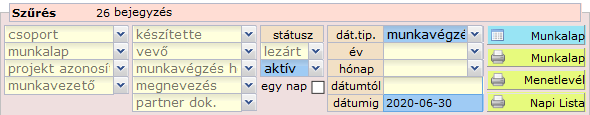 Így a példában 26 munkalapot kapunk találatként. Amennyiben már évek óta készítenénk munkalapokat, minden bizonnyal sokkal több, életszerűen akár több száz munkalap is megjelenne itt.