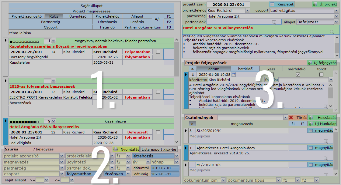 A Projektek a legmagasabb szintű belső munkafolyamat-szervező funkciója a rendszernek, ami lényegében minden, a projekt során létrehozott adatot, dokumentumot, bizonylatot összekapcsol, úgy mint: